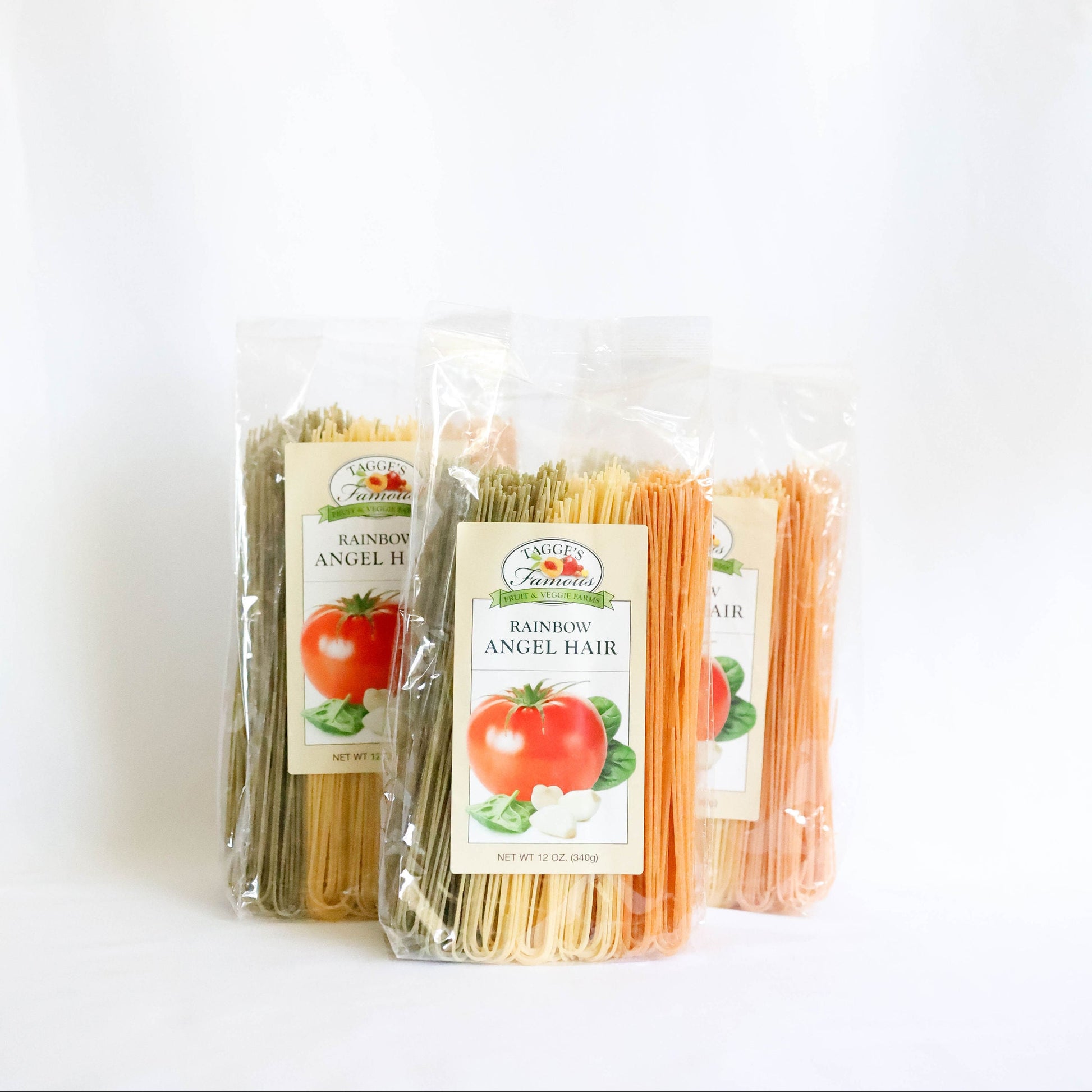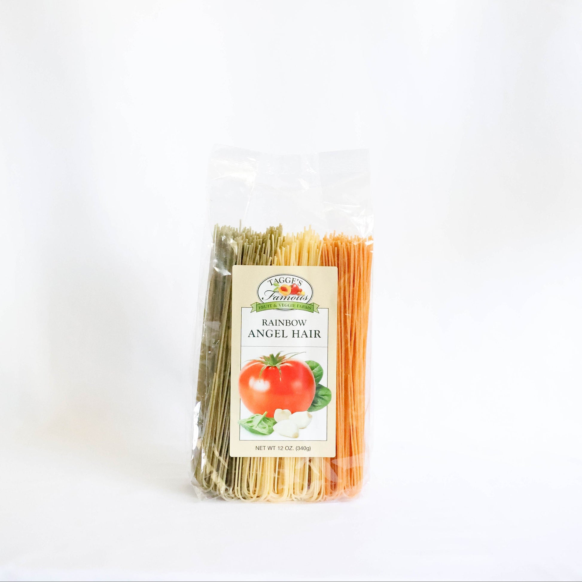 Vibrant, festive, and full of flavor — our Tagge Rainbow Angel Hair Pasta is a beautiful blend of naturally colored pasta made with durum semolina flour and vegetable powders. Each strand adds a pop of color and subtle variety in taste, making every meal a feast for the eyes and palate.