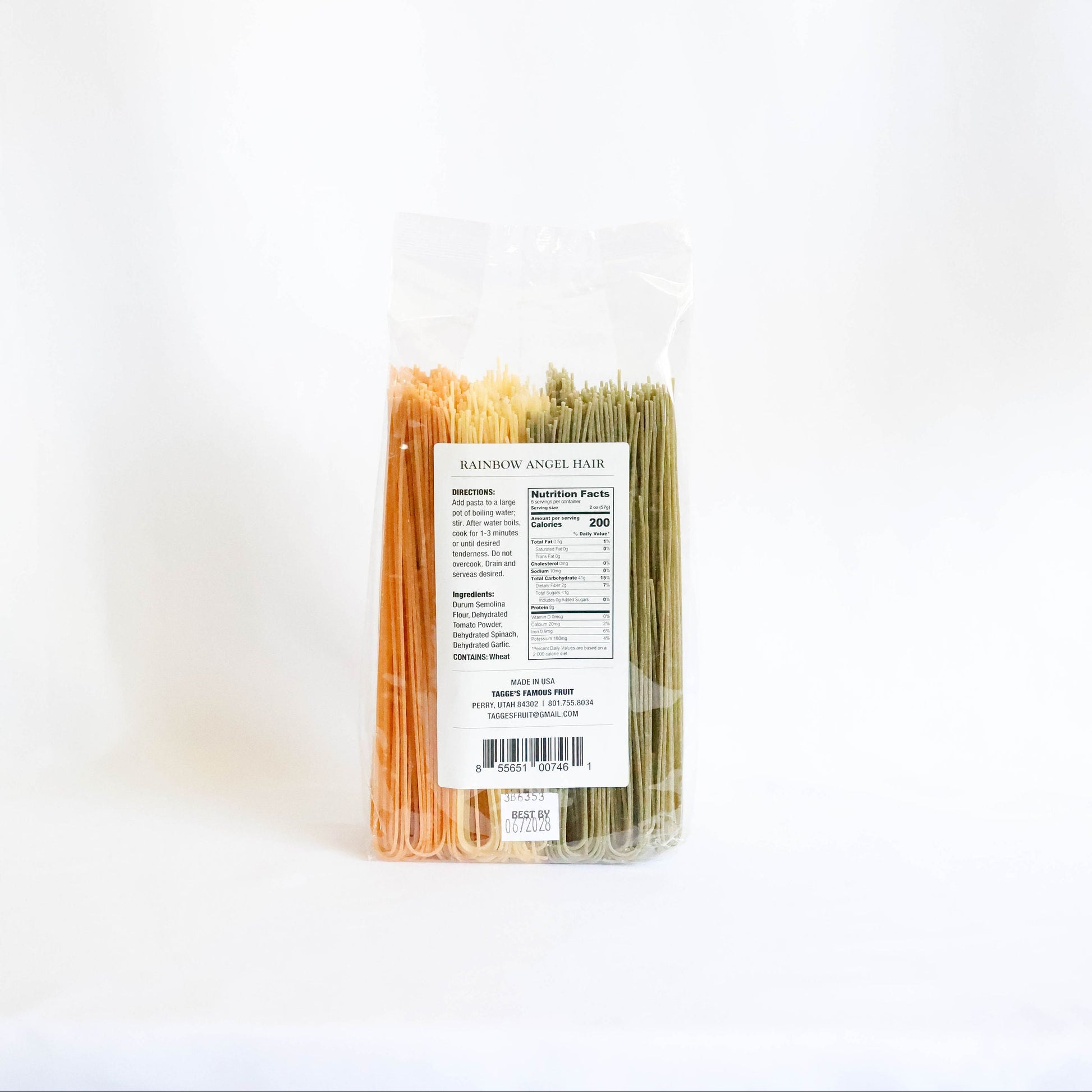 Perfect for light sauces, salads, or as a show-stopping side dish, this delicate angel hair cooks quickly and brings joy to the table with its cheerful mix of hues.