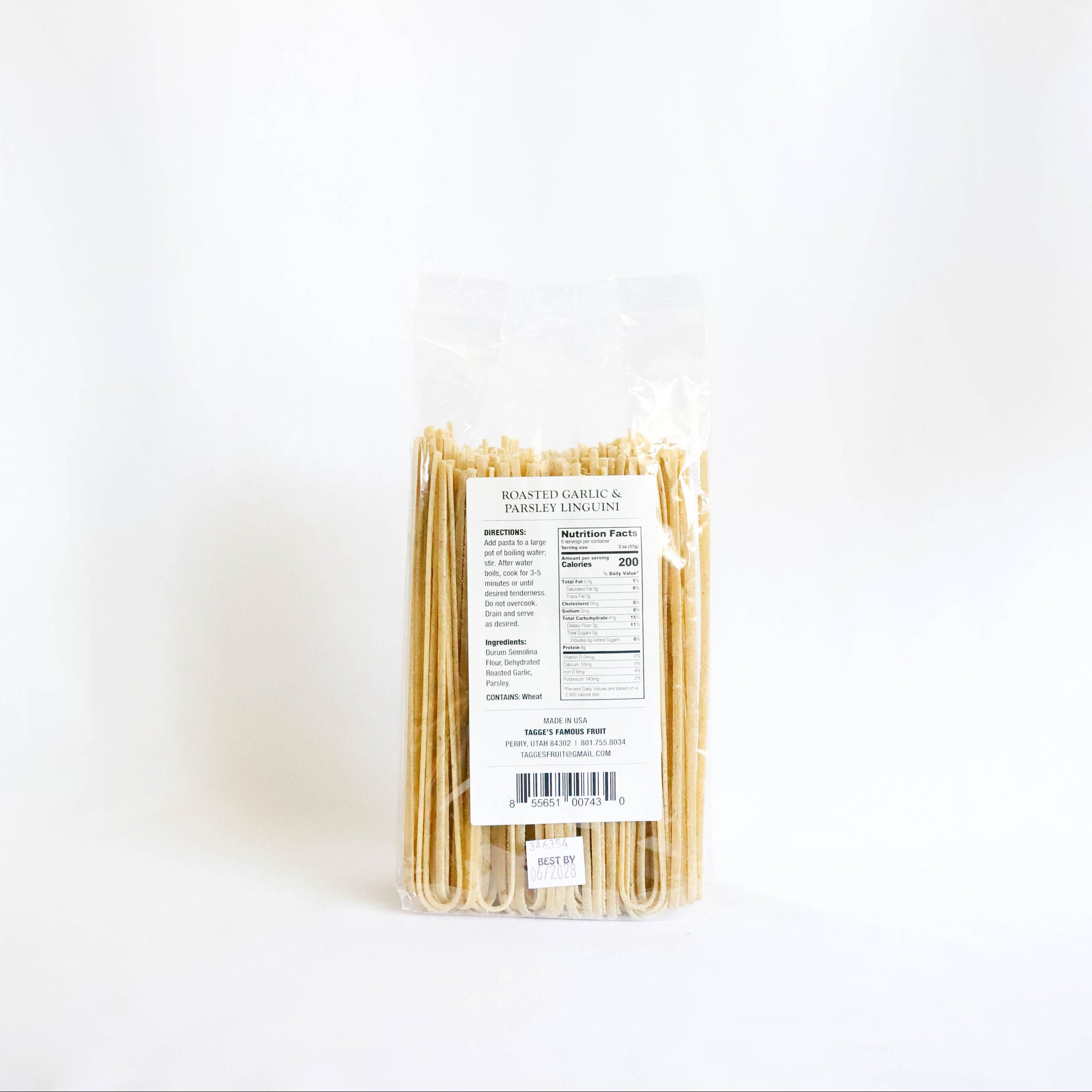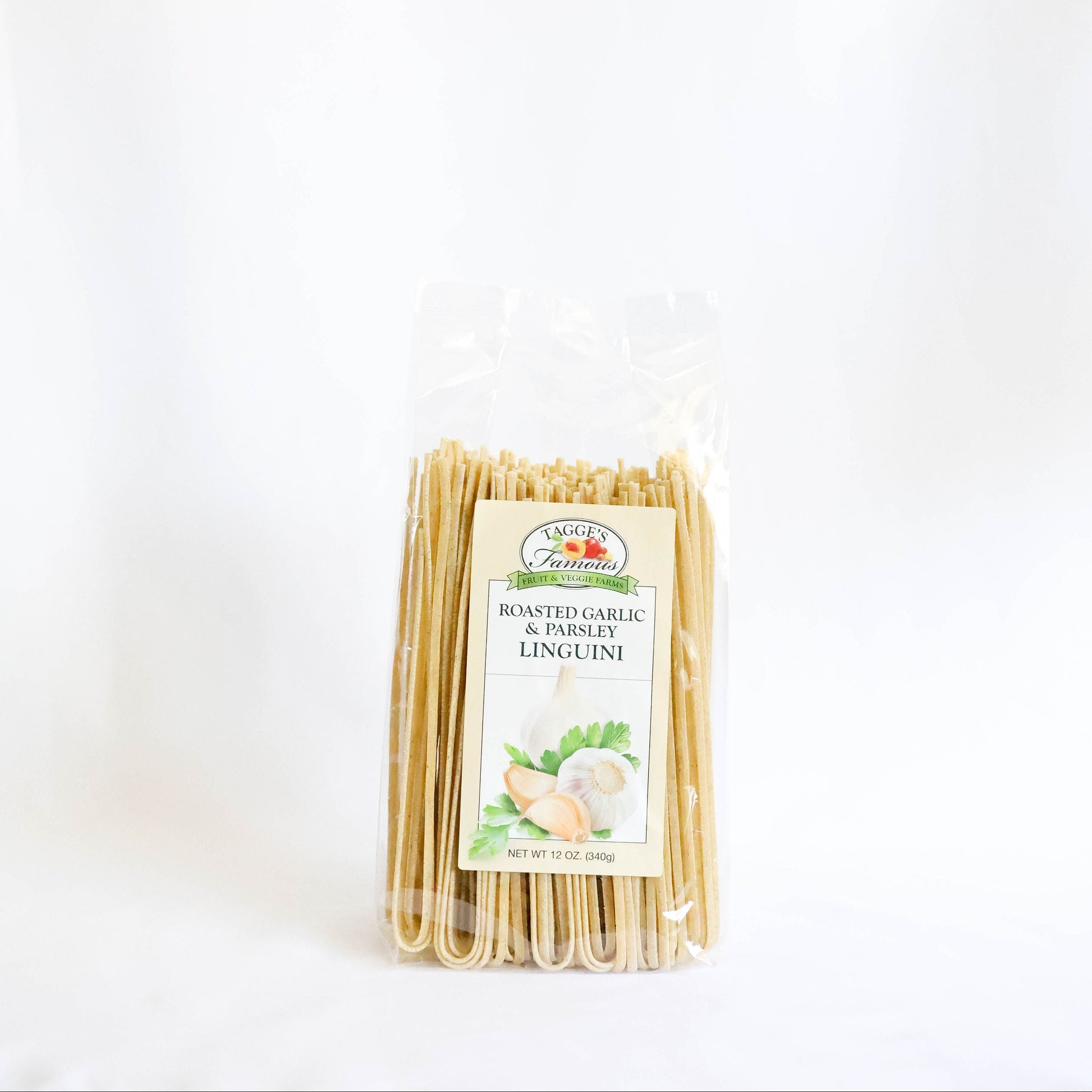 Savory and herbaceous — our Tagge Roasted Garlic & Parsley Linguini is infused with the warm, comforting flavor of roasted garlic and the bright freshness of parsley. Made with durum semolina flour and natural seasonings, it’s a deliciously versatile pasta that turns any meal into something special.